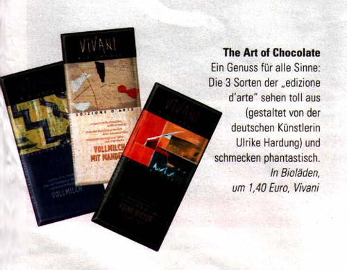 Dieser Hinweis auf die Vivani Bio-Schokolade wurde in der Freundin abgedruckt.